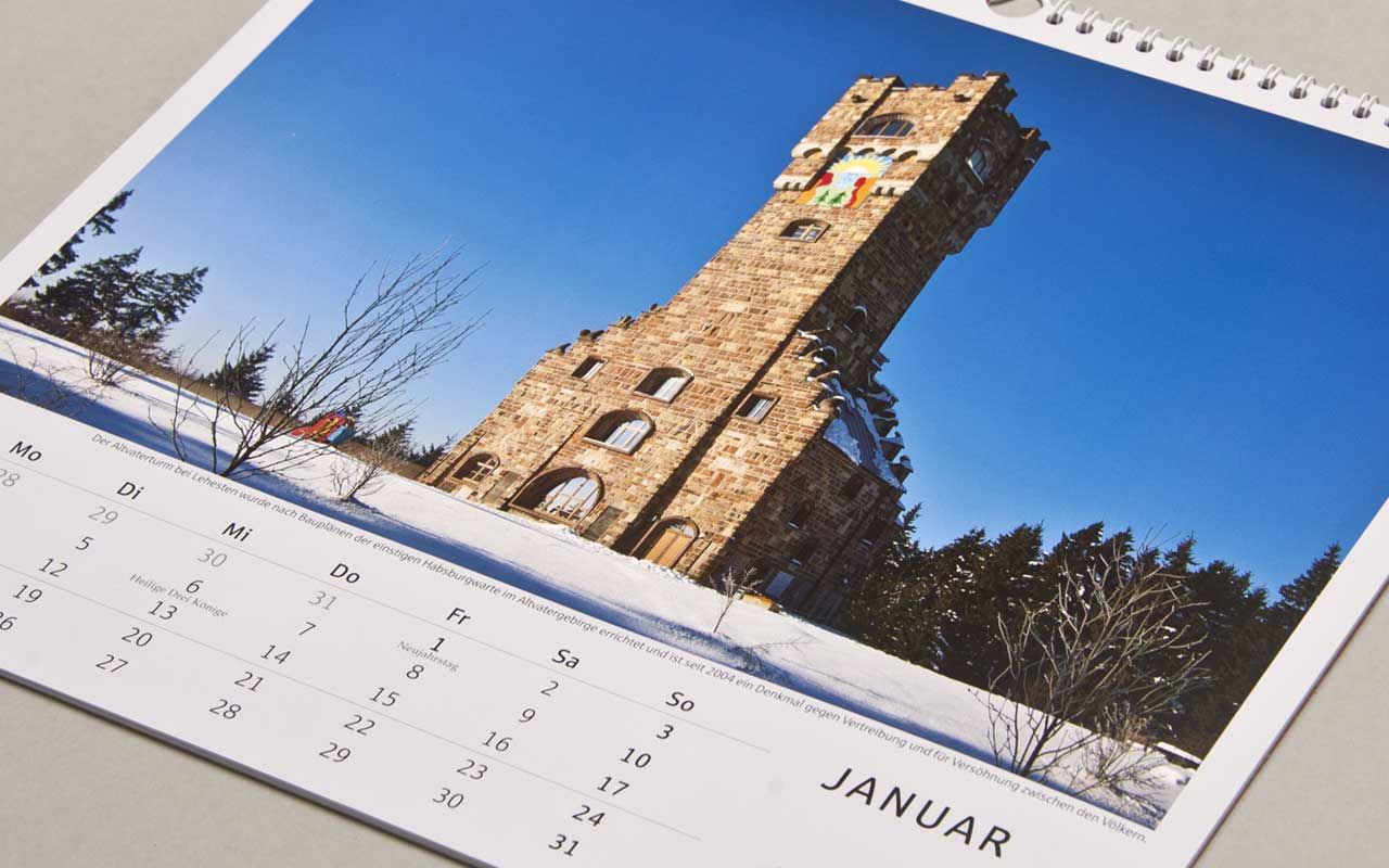 Unsere Agentur erstellte das Konzept, produzierte die Bildmotive in den Jahreszeiten nach der Bildplatzierung im Kalender und erstellte das Layout.