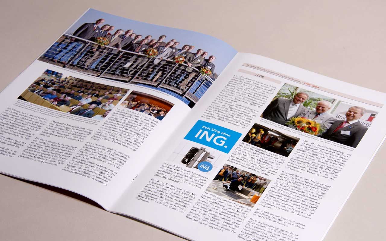 Mit der Gründung der Brandenburgischen Ingenieurkammer als Körperschaft des öffentlichen Rechts erhielten Brandenburgs Ingenieure eine berufsständische Vertretung, die im „Konzert“ mit allen anderen Bundesländern und in der Bundesingenieurkammer seitdem die ihr übertragenen Aufgaben angehen und umsetzen. Es war ein Aufbruch, der mit einem Paradigmenwechsel verbunden war: Die Ingenieurinnen und Ingenieure mussten sich – aus einer Planwirtschaft kommend – auf das weitgehend unbekannte Terrain „Soziale Marktwirtschaft“ als Freiberufler mit ihren Leistungen und eigenem Management durchsetzen. Die Aufgabe der Kammer ist es, als Selbstverwaltungsorgan die Interessen der Mitglieder zu bündeln und zu vertreten. Waren die ersten Jahre davon gekennzeichnet, die Kammer und ihr Wirken aufzubauen, so sind die dann folgenden Jahre dazu genutzt worden, die Tätigkeiten nach allen Seiten hin zu konsolidieren. Die Chronik zieht eine beachtliche Bilanz. Einige wichtige Mitglieder der Kammer präsentieren sich darin mit beeindruckenden Projekten. Die Chronik stellt die Entwicklung der Ingenieurkammer sowie die Visitenkarte einiger Mitglieder vor.