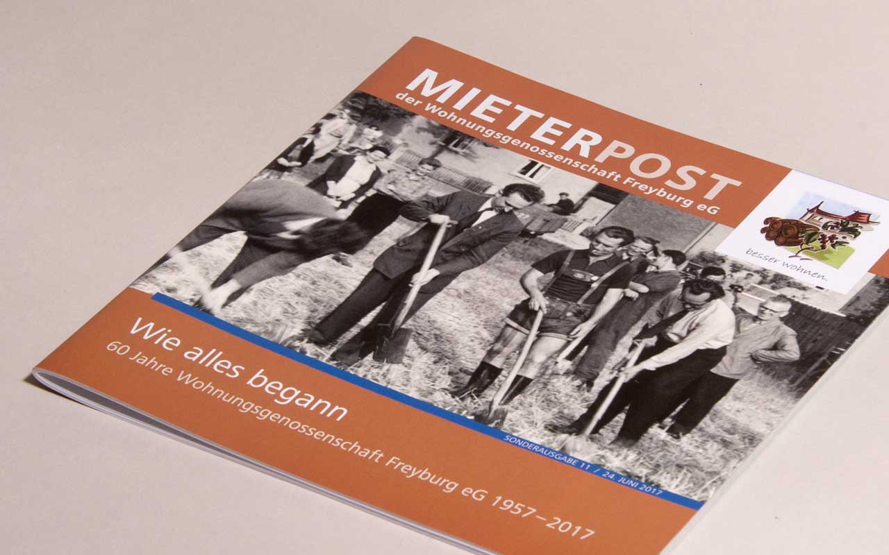 Als die Geschichte dieser Wohnungsgenossenschaft begann, hatten die Akteure weder Bauland, noch Fachleute und auch kein Geld. Doch es gab 25 Mitglieder, die gesagt haben, ich möchte unbedingt eine eigene Wohnung erhalten und bin bereit, mich mit meiner Arbeitskraft einzubringen. Auch am Abend und am Wochenende. Bei vielen Akteuren der ersten Stunde wurden es über 700 Stunden, die sie abends oder am Wochenende leisteten. Mehrere Trägerbetriebe unterstützten die junge Genossenschaft. Heute ist das Unternehmen ein wichtiger Ansprechpartner der Wohnungswirtschaft in der Stadt. Zur Erstellung dieser Chronik wurden durch unsere Agentur viele Geschichten und Bilder aus den Anfangsjahren recherchiert sowie zu den Folgejahren, um die Entwicklung von 60 Jahren in Wort und Bild nachvollziehbar erzählen zu können. Viele Interviews mit Mitgliedern der ersten Stunde sowie Akteuren wurden dazu geführt und mehrere Archive aufgesucht.