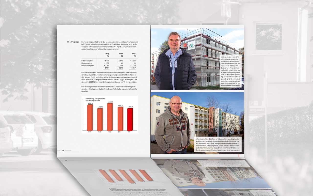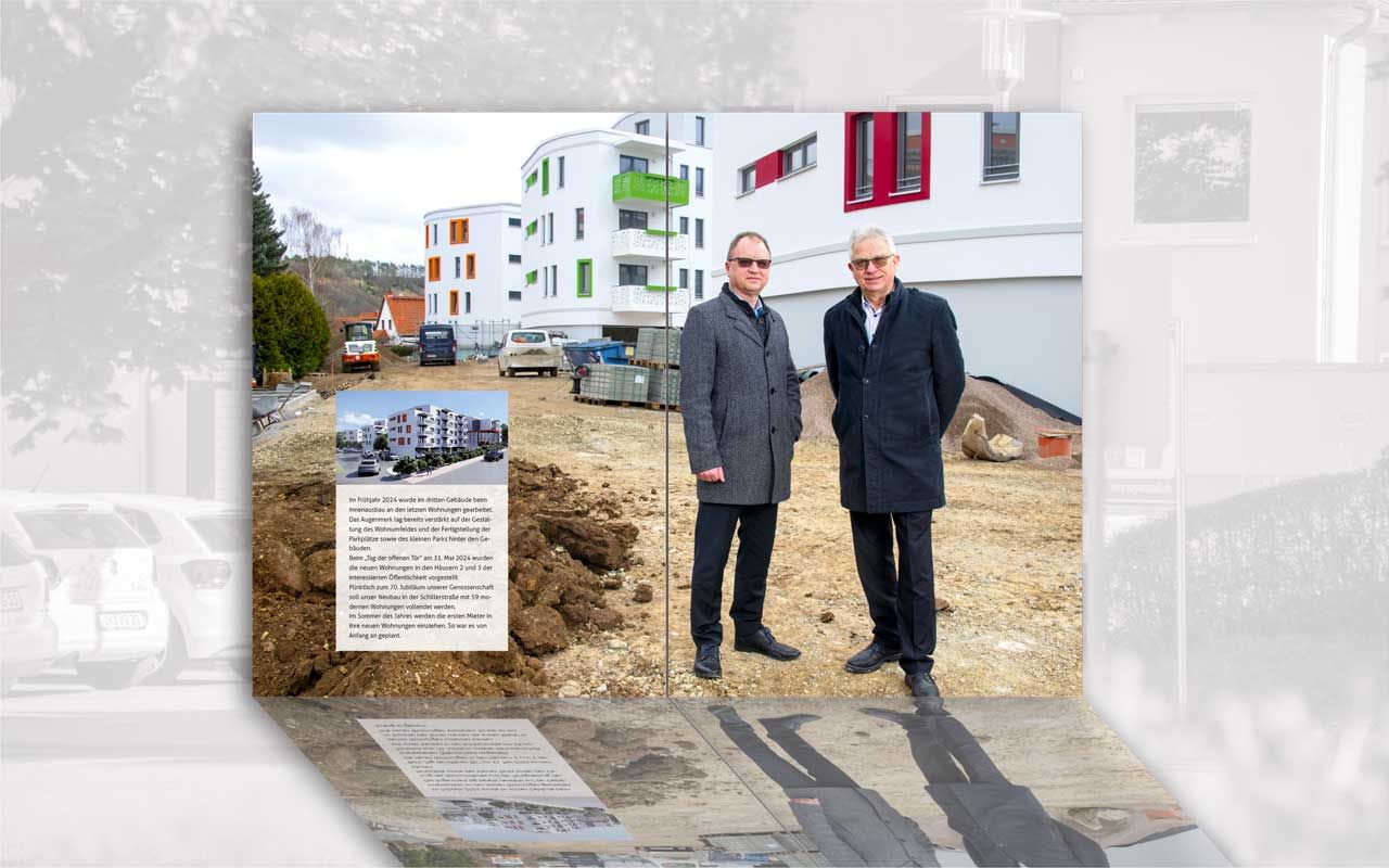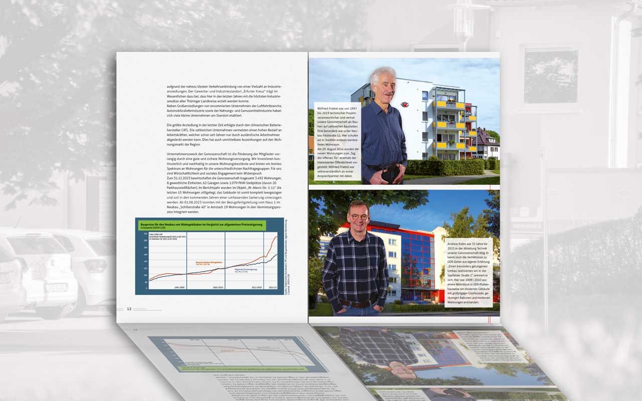 Dieser Geschäftsbericht entstand in einem Jubiläumsjahr. Folglich entstanden dazu Bildmotive, bei denen wichtige Akteure mit einem ihrer Projekte dargestellt werden. Kurze Texte beschreiben die abgebildete Person und das vorgestellte Projekt.