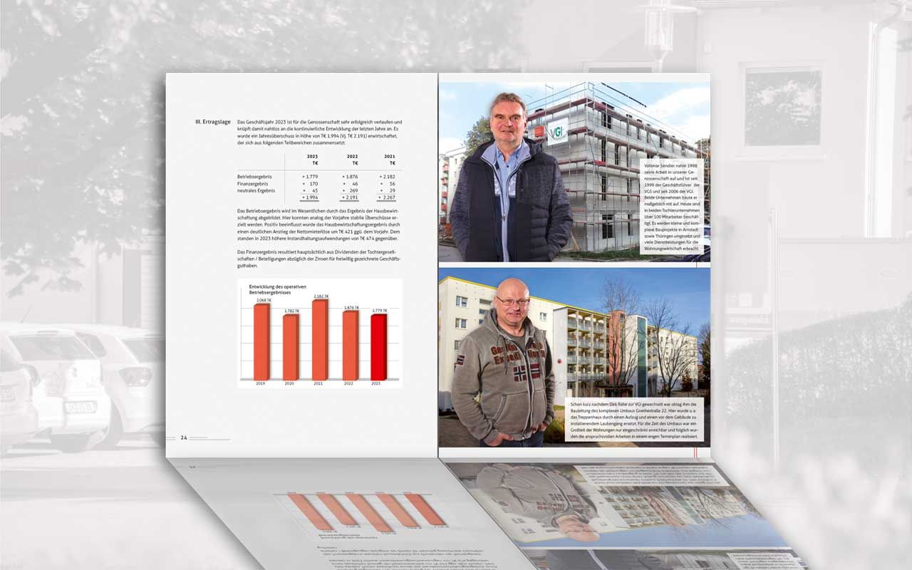 Selbstverständlich bleiben darüber hinaus Geschäftsberichte spannende Resultate der Jahresleistung eines Unternehmens. Wichtige unternehmerische Entscheidungen und Entwicklungen werden per Wort und Grafik nachvollziehbar dargestellt. Für die gestalterische Handschrift der Grafiken haben wir ein übergreifendes Designkonzept erstellt und umgesetzt.