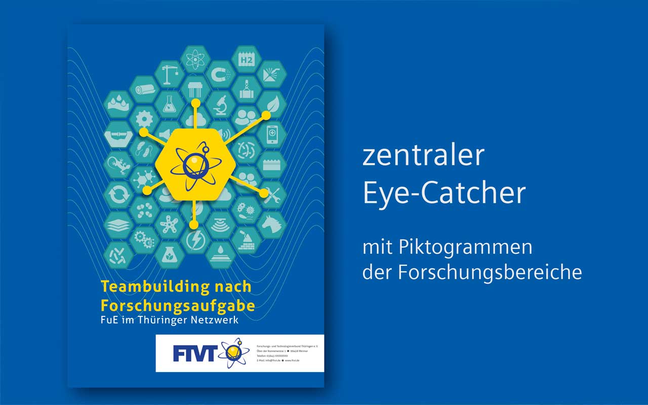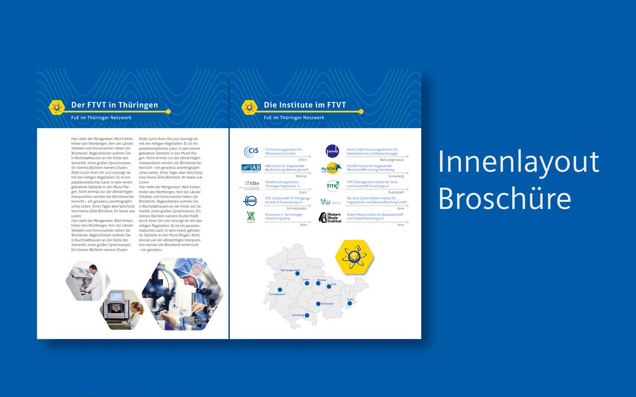 Für eine Interessengemeinschaft der Forschungsinstitute in Thüringen haben wir eine Richtlinie für ein Corporate Design erstellt, inkl. Schlüsselelementen für verschiedene Anwendungen und einen Blickfang (Eyecatcher).