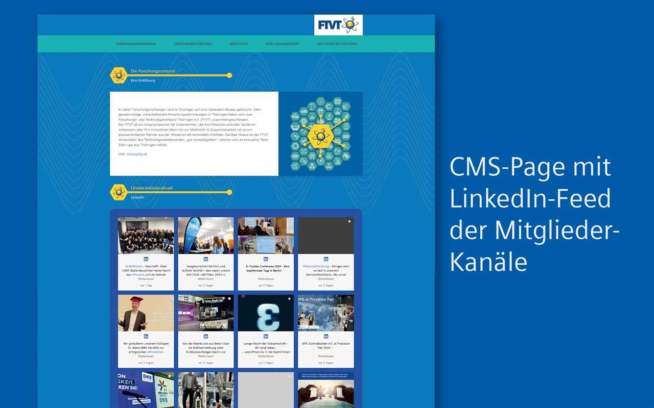 Darüber hinaus haben wir eine neue CMS-Website erstellt. Eine Besonderheit ist dabei, dass auf der Startseite die jeweils aktuellen Posts der LinkedIn-Kanäle der beteiligten Mitgliedsunternehmen angezeigt werden. Insofern ist die Page stets tagesaktuell.