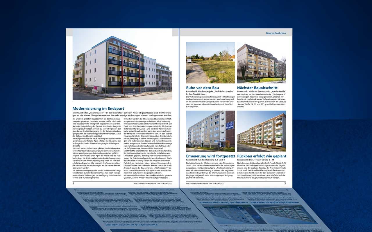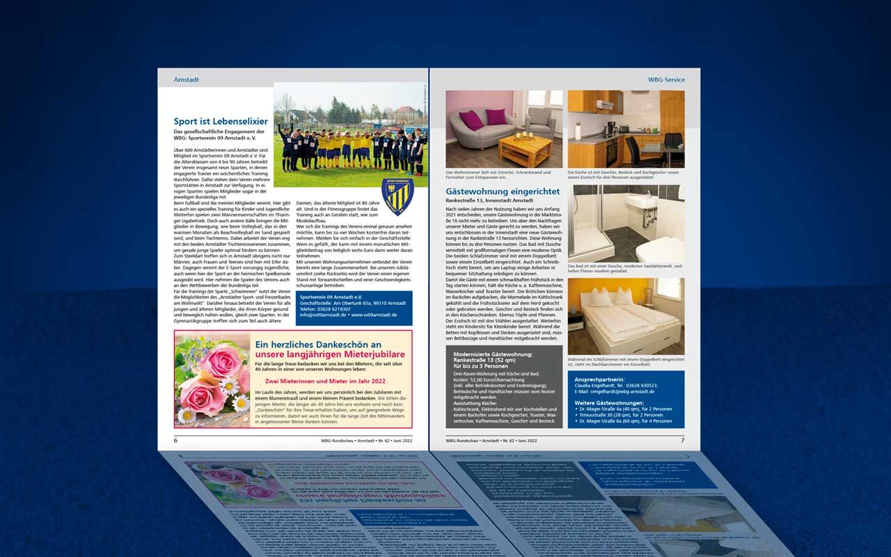 Für die Hauszeitschrift erstellen wir den Redaktionsplan, führen Interviews, recherchieren zu verschiedenen Themen und erstellen die Bildmotive. Im Basislayout werden die Beiträge abwechslungsreich gestaltet und ggf. mit Funktionsgrafiken illustriert.