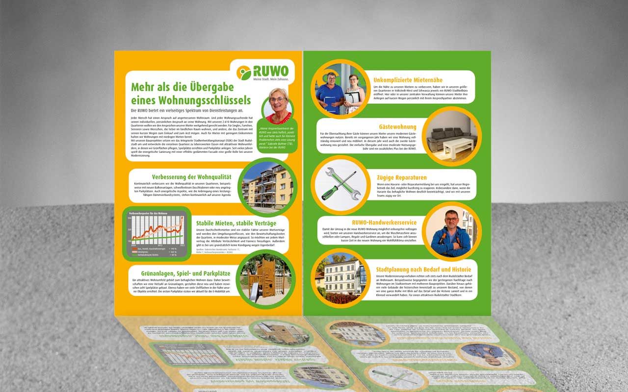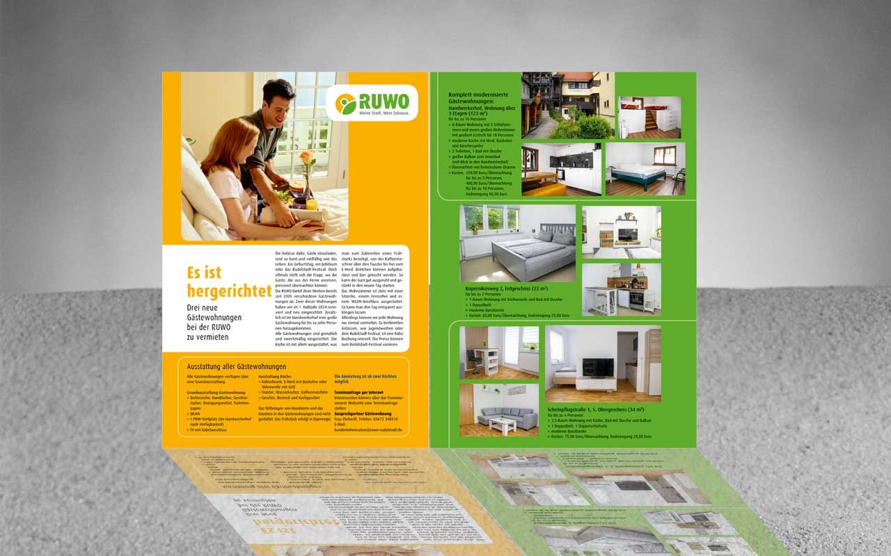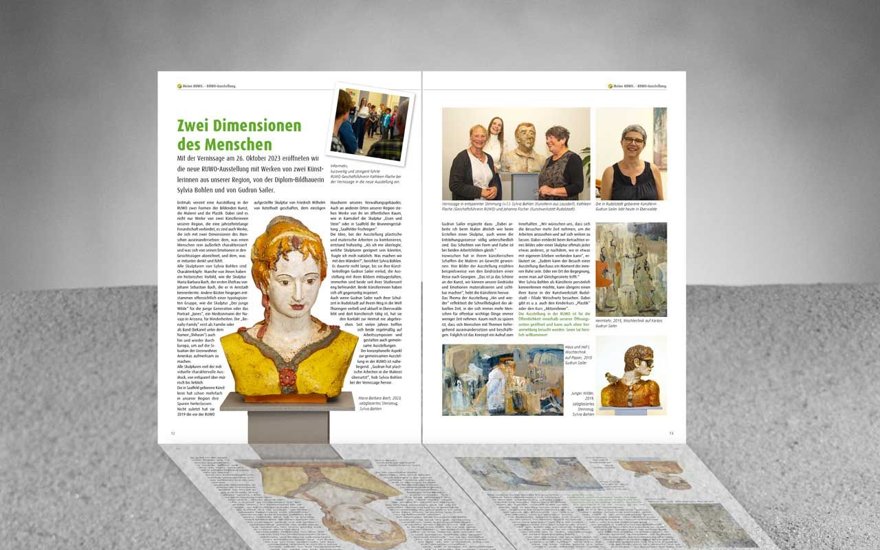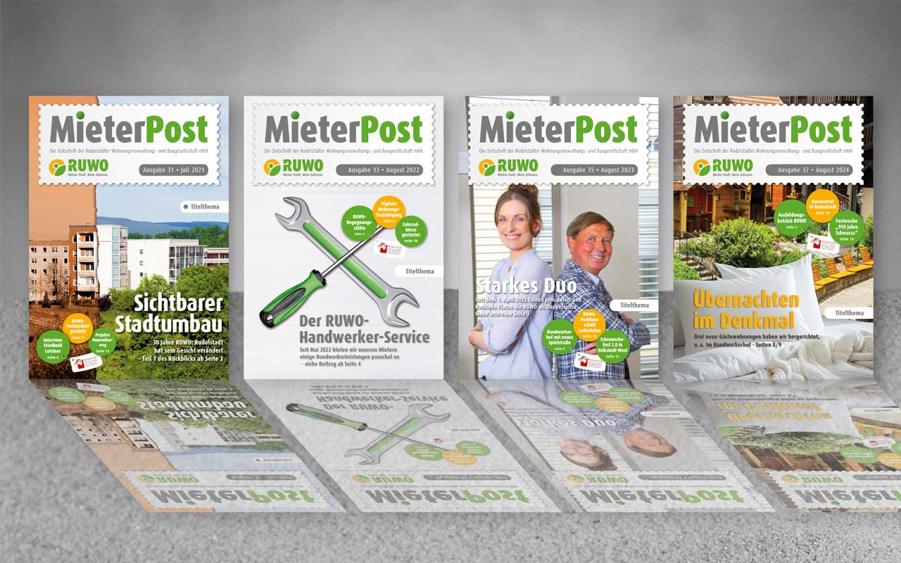 Immer mehr Unternehmen setzen bei ihrer Öffentlichkeitsarbeit auf eigene Hausmedien, da sie hier die redaktionellen Inhalte und auch den Empfängerkreis zu einhundert Prozent beeinflussen können. Für ein großes Unternehmen der Wohnungswirtschaft in Rudolstadt übernahm unsere Agentur 2020 die Erstellung der Hauszeitschrift mit Text- und Bildredaktion sowie Layout. Oftmals werden ein Fotoshooting und ein Interview im Zusammenhang realisiert. Attraktive Bilder und positive Texte kennzeichnen die Beiträge, deren Themenstellungen sich auch an den Interessen der Leser orientieren. Zur Jahresmitte und zum Jahresende erscheint eine interessante Ausgabe über die Quartiere, verschiedene Themen der Wohnungswirtschaft und das gesellschaftliche Leben in Rudolstadt.